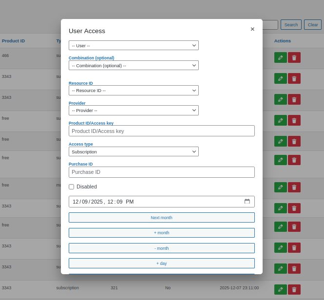 - Product ID / Key – An optional identifier used for your own reference. It can contain any string (for example, a product SKU, license key, or note). It does not affect access behavior by default and may be left empty.