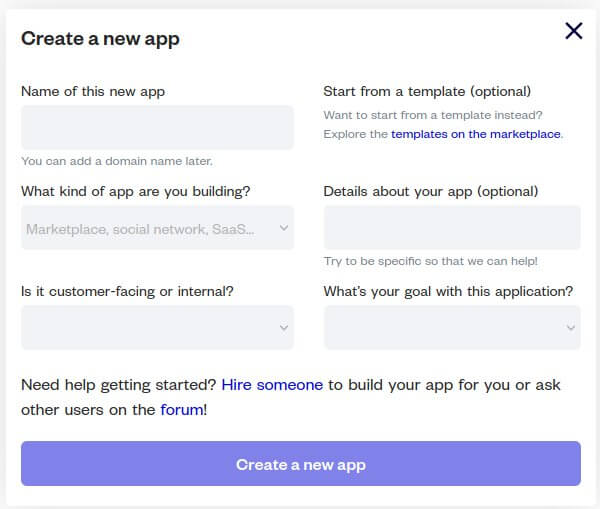 You can build a marketplace app for free on Bubble by signing up and clicking ‘new app’ on the home page. Then, you need to assign some application attributes. Input name of application, select Marketplace option inside ‘What kind of app are you building?’ , ‘External customer facing’ in ‘Is it customer-facing or internal?’ field , select any goal in ‘What’s your goal with this application?’ field. Then click the ‘Create new app’ button. At this step we finished our initial preparations. Now we will go through further steps to get our application working. We will describe these step detailed in our future articles: